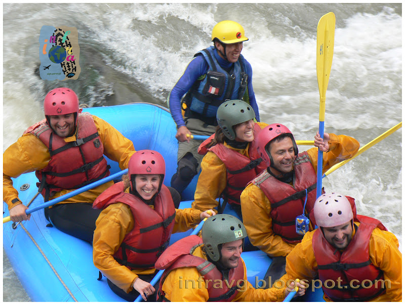 Algunos rápidos son de nivel 2 y 3. Íbamos con un grupo de chicos de Valencia. Nuestro guía es Jimy (chaleco azul).